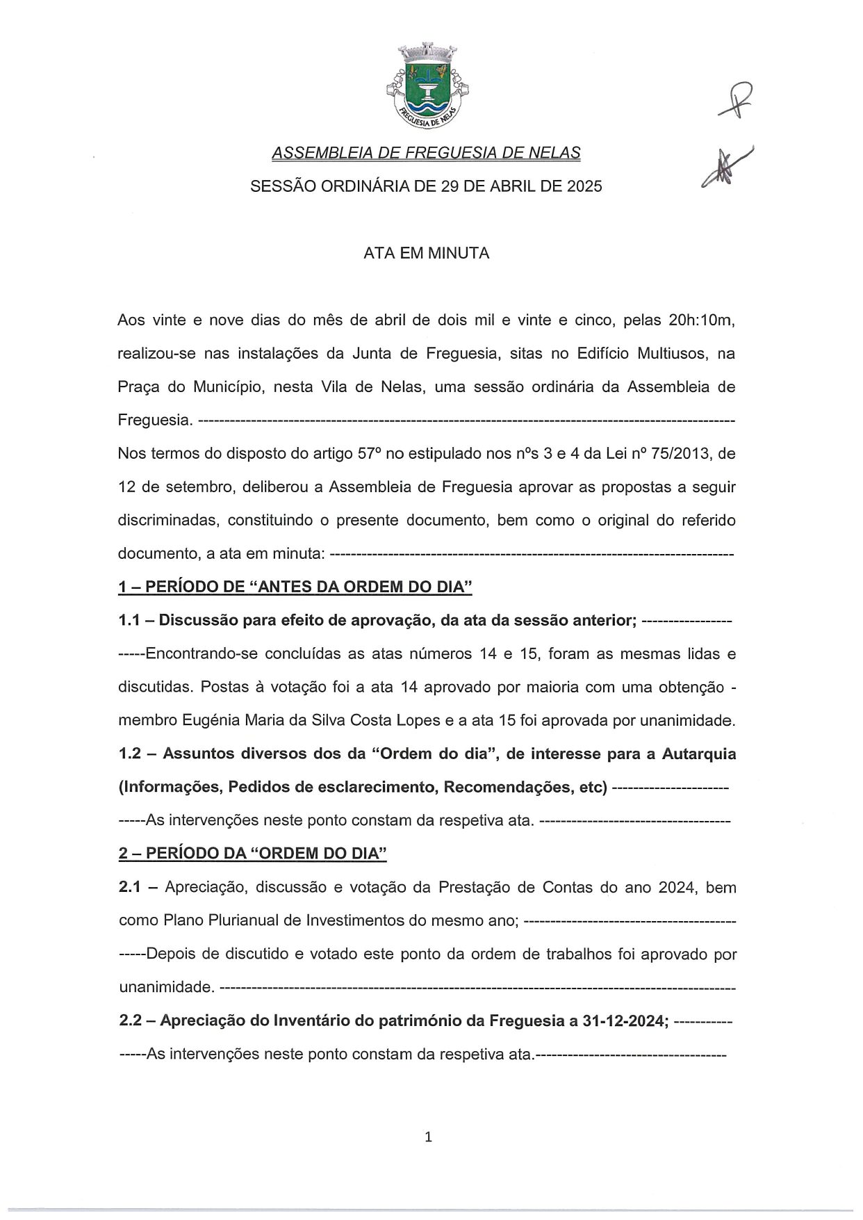 Atas da Junta de Freguesia de Nelas